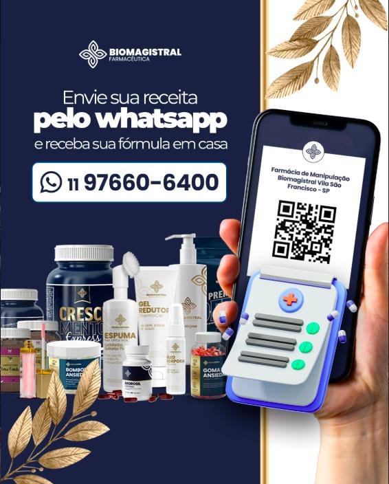A Biomagistral Vila São Francisco é uma farmácia localizada no coração da Vila São Francisco, em São Paulo. Cada fórmula é desenvolvida de forma individual, com rigor técnico, rastreabilidade e acompanhamento farmacêutico. Atuamos com manipulação personalizada de cápsulas, vitaminas, nutracêuticos e fórmulas voltadas à saúde preventiva, sempre respeitando a necessidade e o tempo de cada pessoa. Para quem busca uma farmácia de manipulação perto de casa, oferecemos atendimento local na Vila São Francisco, com orientação farmacêutica clara e cuidado individual em cada etapa. Ambiente tranquilo, atendimento sem pressa e suporte direto pelo WhatsApp para orientar e acompanhar cada cliente de perto.